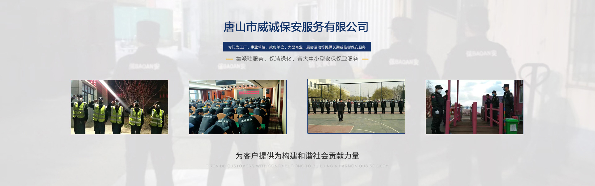 唐山市威誠保安服務(wù)有限公司自成立以來以“嚴防死守、忠于業(yè)主”為服務(wù)原則,以“客戶滿意、 合作共贏”為根本目標。以科學(xué)的管理、多方位多層次的服務(wù),建立了首問責(zé)任制,完善了走訪、回訪 、滿意度調(diào)查、末位淘汰的預(yù)警管理,不斷提高服務(wù)質(zhì)量,提高業(yè)主滿意度,提高企業(yè)形象。秉承“誠 實守信,紀律嚴明,團結(jié)協(xié)作,致精致誠”的服務(wù)理念,為客戶提供高品質(zhì)、多方位、專業(yè)化的保安服務(wù)。 本公司制定了嚴謹?shù)亩ㄏ蛘猩徢芭嘤?xùn)、考核錄用、崗中培訓(xùn)、持續(xù)培訓(xùn)、末位淘汰制等一整套完善的管理體系。可以根據(jù)客戶的要求實地勘察評估,以量身定做的方式提供安保防范服務(wù)。